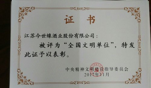 11月17日,在全國精神文明建設(shè)表彰大會上,今世緣酒業(yè)被中央文明委授予“全國文明單位”稱號。這是幸福今世緣建設(shè)取得的重大標(biāo)志性成果。近年來,特別是黨的十八大以來,今世緣酒業(yè)堅持將社會主義核心價值體系融入企業(yè)生產(chǎn)經(jīng)營,大力弘揚企業(yè)精神,全力實施“打造品牌、以質(zhì)取勝、文化營銷、人才強企”四大基礎(chǔ)戰(zhàn)略,持之以恒并創(chuàng)造性地開展具有時代特色的文明創(chuàng)建工作,促進(jìn)了企業(yè)更好更快發(fā)展,各項工作邁上新臺階,主要經(jīng)濟指標(biāo)攀上新高度。黨的十九大勝利召開后,公司黨委在切實學(xué)懂弄通做實黨的十九大精神上下功夫,深刻學(xué)習(xí)領(lǐng)會我國社會主要矛盾發(fā)生的歷史性變化,緊密結(jié)合今世緣生產(chǎn)經(jīng)營實際,緊扣主要矛盾,謀劃酒緣大業(yè),在滿足人民日益增長美好生活需要中搶抓新機遇、建好新模式、培育新動能,在深化“品牌+渠道”雙驅(qū)動中追求卓越今世緣。
