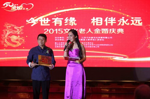 1、“今世有緣、相伴永遠(yuǎn)”2015文化老人金婚慶典現(xiàn)場(chǎng)。