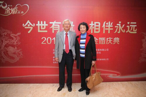 “攜手真情長(zhǎng)憶,更冀重來(lái)半百,永久踏仙田。幸有前緣在,松鶴伴琴弦。”這是程裕禎老人在現(xiàn)場(chǎng)為今年金婚特意填的一首詞。程裕禎退休前任北京外國(guó)語(yǔ)大學(xué)中文學(xué)院院長(zhǎng)兼海外漢學(xué)研究中心主任。老伴解波退休前在人民日?qǐng)?bào)工作,曾獲“全國(guó)三八紅旗手”、“中直機(jī)關(guān)首屆十大女杰”等稱號(hào)。談起他倆的愛情,程裕禎說(shuō),他與解波結(jié)緣于未名湖畔,都是北京大學(xué)中文系的。戀愛后,每到寒暑假,她就要回上海探親。當(dāng)時(shí)的學(xué)生專列,沒有發(fā)車的準(zhǔn)確時(shí)刻,程裕禎就送她早早到車站等候。列車啟動(dòng),已是夜半時(shí)分,而公交早已停運(yùn),他就一直綣在候車室等待天亮,才乘公交回學(xué)校。解波說(shuō),在2003年一度病危,以后又多次住院治療,每次都是程裕禎陪伴照料,病房醫(yī)護(hù)都稱他是“年紀(jì)最大的護(hù)工”。