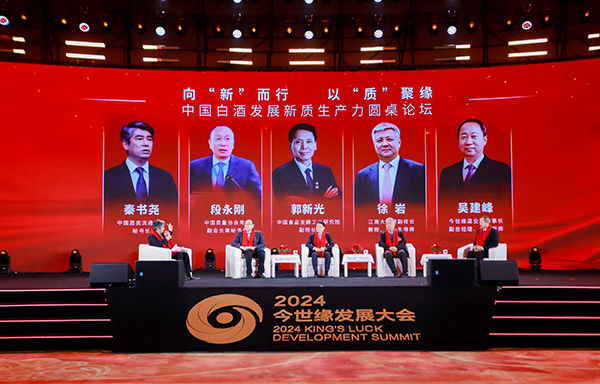 在圓桌對話環節,多位頂尖專家、學者,為今世緣乃至白酒行業整體發展進行交流互動,建言獻策。今世緣酒業副董事長、副總經理、總工程師吳建峰,與中國酒類流通協會秘書長秦書堯、中國質量協會常務副會長兼秘書長段永剛、中國食品發酵工業研究院副院長郭新光、江南大學原副校長、教授、博士生導師徐巖等專家學者一道,圍繞“新質生產力與中國白酒高質量發展新動能”主題進行高峰對話,為中國白酒產業發展出謀劃策,助力產業創新升級。