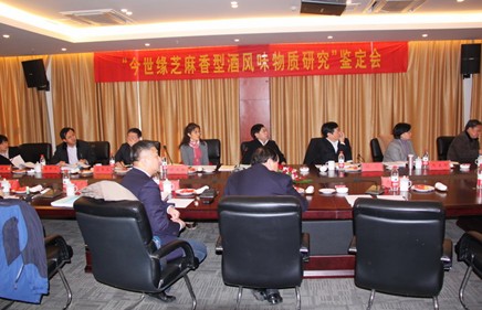 2012年12月4日,“中國白酒169計劃”項目之一的“今世緣芝麻香型酒風味物質剖析技術體系及其關鍵風味物質研究”項目科研成果鑒定會在江蘇今世緣酒業召開。此次會議由中國輕工業聯合會組織和主持。參加此次鑒定會的領導有:中國輕工業聯合會科技辦處長朱業耘,江蘇省酒類行業協會會長陳國鎖、副會長兼秘書長王建英;鑒定委員會專家有:中國酒業協會白酒分會秘書長趙建華、副秘書長宋書玉,中國食品科學技術學會教授孫熲,中國食品發酵工業研究院的教授熊正河,山東扳倒井副總張鋒國,安徽口子酒業副總張國強,淮陰工學院教授陳曉明;項目完成單位領導有:江南大學副校長、教授徐巖,研究員范文來,今世緣酒業副總經理吳建峰以及研究院相關科研人員。會議由朱業耘處長主持,趙建華秘書長任鑒定委員會主任。