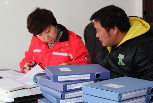 工作人員在檢查安全生產(chǎn)臺(tái)賬