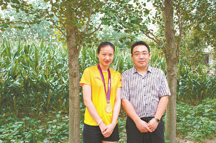 站在獎牌榜前,曉娟自豪地說:截至目前,從全運會、全錦賽、世青賽、亞錦賽、世錦賽、亞運會,到世界杯,再到奧運會,只要是重劍項目的賽事,所有的冠軍、所有的金牌她都獲得了。剛剛獲得的這枚奧運金牌,是所有金牌中分量重的一塊。當然,為了這枚沉甸甸的金牌,她也付出了很多很多:十二三歲就離開家,在國家隊訓練,轉瞬就是十幾年。半年多回不了一趟家,這次難得的機會也是行程匆匆,回鹽后的兩三天時間里,自己還沒能在家住過一個晚上。駱曉娟的父母都是純樸的農民,當她講述時,駱爸爸只是前后跟著,在一旁安靜地微笑著,滿眼慈愛地看著女兒。