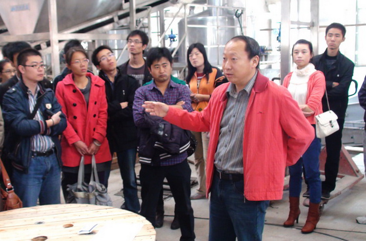 今世緣酒業(yè)是江南大學的教學實踐基地,這次來參觀的大部分都是在讀研究生。在參觀過程中,他們認真聽取了公司副總經(jīng)理吳建峰關于釀酒過程及工藝的詳細介紹,以及公司“人才強企”戰(zhàn)略,采用多項措施吸引人才的情況。