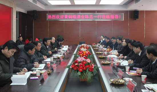 2月22日,武漢天龍黃鶴樓酒業有限公司代表團一行在總經理陳佳的帶領下,來今世緣參觀考察。
