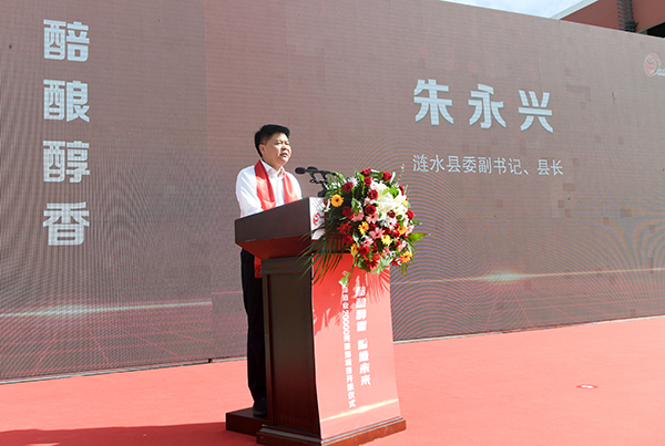 朱永興代表漣水縣委、縣政府向各位嘉賓的到來表示誠摯歡迎,并簡要介紹了漣水經濟社會發展情況。他說,今世緣酒業是淮安首家主板上市公司,先后6次入選“中國主板上市公司價值百強”,連續16年位居中國白酒“十強”,榮膺全國質量獎、省長質量獎、中國白酒智能化釀造示范車間、國家級綠色工廠,2023年營收首超100億元。如今,今世緣酒業20000噸釀酒項目投產開釀,標志著今世緣酒業在技術創新和產業升級上邁出了堅實的一步。全縣上下將以此次項目投產開釀為契機,發揮今世緣的產業鏈“鏈主”作用,依托我縣食品產業園發展平臺,加速全產業鏈、供應鏈的價值協同和價值共創,加快打造長三角綠色食品產業示范集聚區。我們將全力當好企業發展的“店小二”,深入踐行“做的要比說的好,服務要比需求早”101%服務理念,讓“物流成本最低、要素成本最低、服務環境最優、辦事效率最高”成為漣水最靚麗的營商名片。