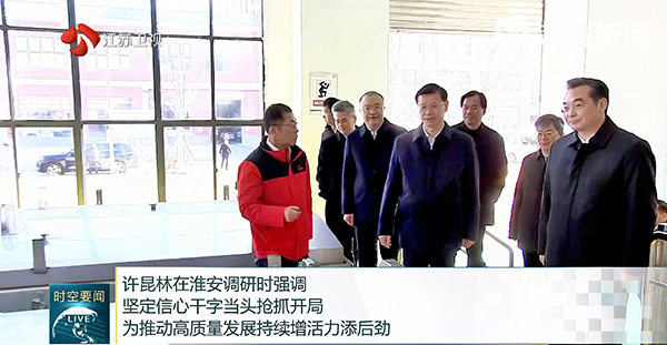 1月14日至15日,省長許昆林在淮安市調研。他強調,要深入學習貫徹習近平總書記對江蘇工作重要講話重要指示精神,牢牢把握高質量發展首要任務,扭住重大項目主抓手,強化企業創新主體地位,堅定信心、干字當頭,迎難而上、搶抓開局,進一步鞏固和增強經濟回升向好態勢,在新舊動能平穩接續轉換中拓展發展空間,為推動高質量發展持續增活力添后勁。