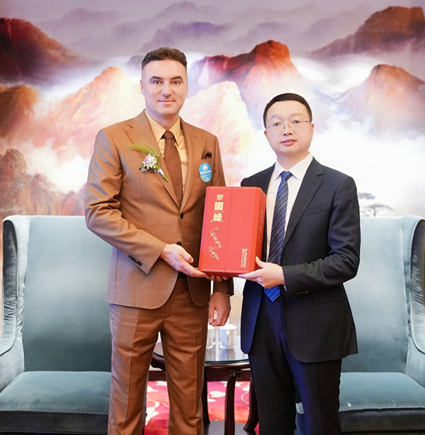胡躍吾向波黑駐華大使H.E.Mr.Sinisa Berjan贈送國緣V9