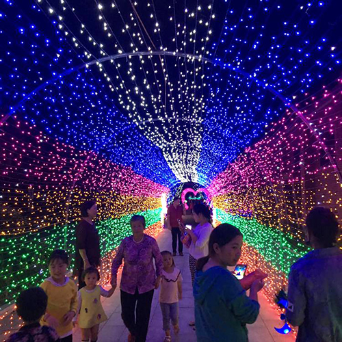 本次燈光節(jié)為期16天,通過千萬盞彩燈的表現(xiàn)手法,向游客展示夢幻時光隧道、七彩變換水母燈、愛心拱門、帆船、連體LOVE、小豬佩奇、富士山、中國夢、海豚、梅花鹿等20余組大型燈光造型,盡展燈海奇觀,給人帶來新穎、靚麗的視覺沖擊。