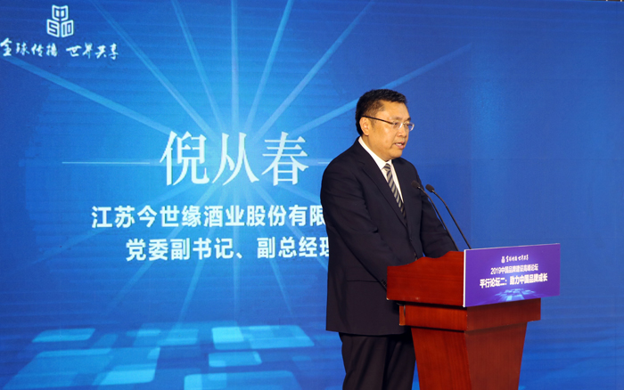 今世緣酒業黨委副書記、副總經理倪從春在“助力中國品牌成長”論壇上發言。