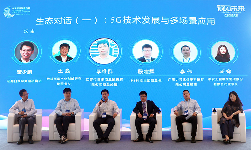 今世緣酒業副總經理李維群(左三)在“預見未來”智慧產業生態專場就智能化釀酒分享今世緣酒業的創新實踐。