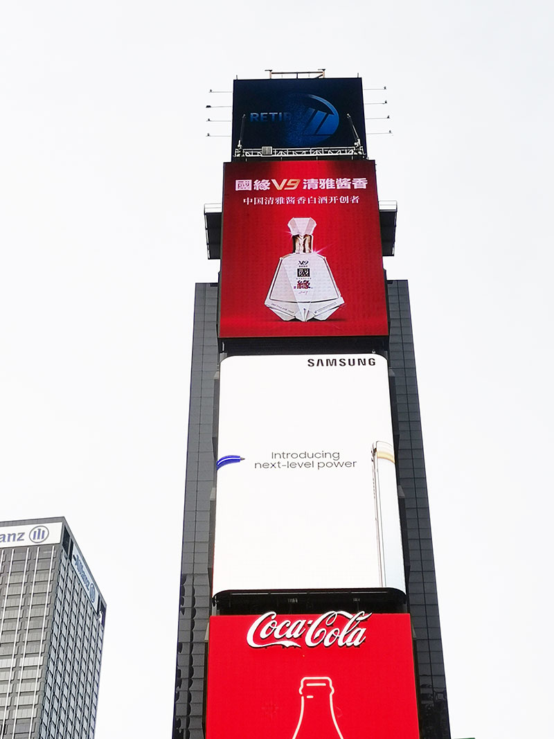 美國紐約時代廣場,擁有110余年的歷史,被譽為“世界的十字路口”,是全球商業核心地,每天吸引數以萬計的游客觀光游覽。當天,國緣V9的亮相展示了今世緣人的文化自信和品牌自信,“成大事,必有緣”的品牌主張成為更多人的共識。