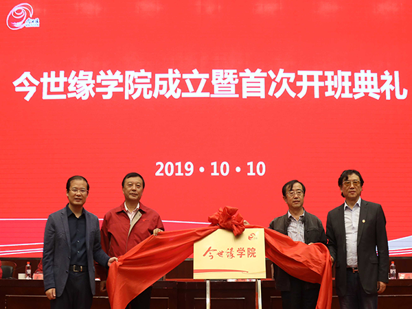 今世緣酒業(yè)黨委書記、董事長、總經(jīng)理周素明與外聘教授彭紀(jì)生、王朝成、陸興武共同為今世緣學(xué)院揭牌