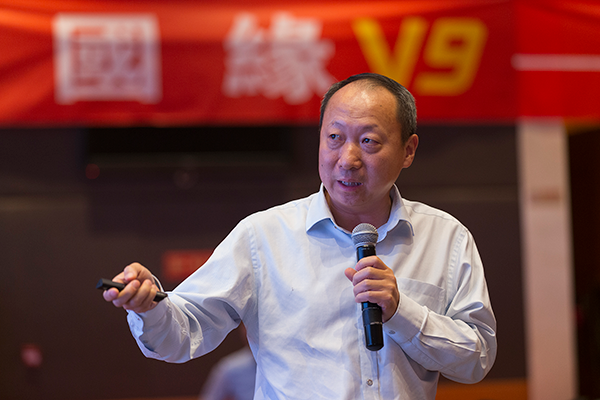 “大國醬香首席工匠”今世緣酒業副董事長、副總經理吳建峰在大國醬香?大師品鑒VIP盛宴上分享國緣V9清雅醬香。