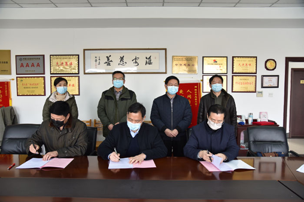 江蘇今世緣酒業股份有限公司副總經理王衛東(前排中)代表今世緣簽署捐款協議書