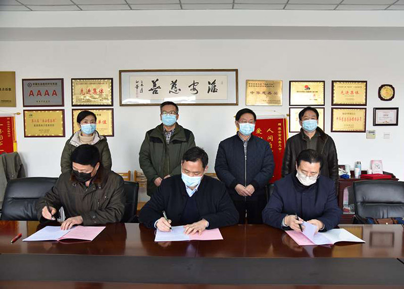 今世緣酒業副總經理、董事會秘書王衛東(前排中)代表今世緣簽署捐贈協議書。