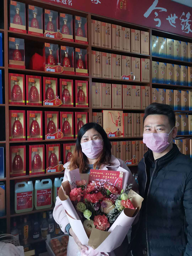 濟(jì)南營(yíng)銷中心各辦事處經(jīng)理,攜手區(qū)域經(jīng)銷商給核心終端網(wǎng)點(diǎn)送上“女神節(jié)”禮物。佳福利酒堡的老板娘智云說(shuō):“感謝今世緣的關(guān)懷。今世緣國(guó)緣系列是我們的主推產(chǎn)品,今年我們一定會(huì)更加努力,讓今世緣在濟(jì)南發(fā)展得更好更快。”