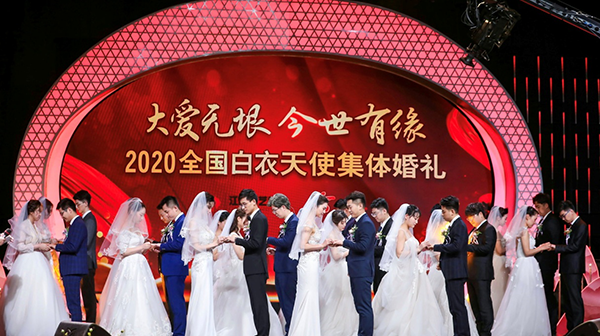 江蘇廣播電視總臺(tái)主持人陳怡、曹洋主持2020全國白衣天使集體婚禮。