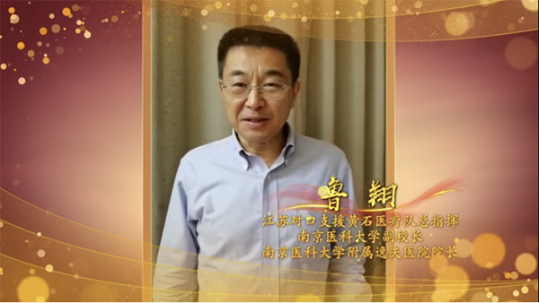 江蘇對(duì)口支援黃石醫(yī)療隊(duì)總指揮、南京醫(yī)科大學(xué)副校長魯翔為2020全國白衣天使集體婚禮證婚。