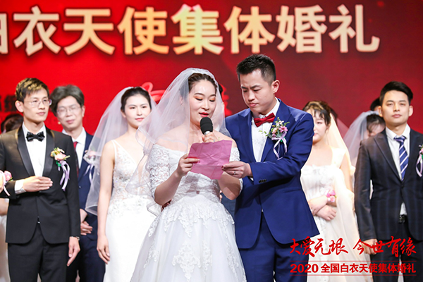 “為白衣天使舉辦婚禮,是一種善緣,更是一種責(zé)任。我們要向懸壺濟(jì)世、醫(yī)者仁心的職業(yè)精神致敬,向迎難而上、舍生忘死的英雄主義致敬,向自強(qiáng)不息、頑強(qiáng)拼搏的民族精神致敬。”倪從春說。