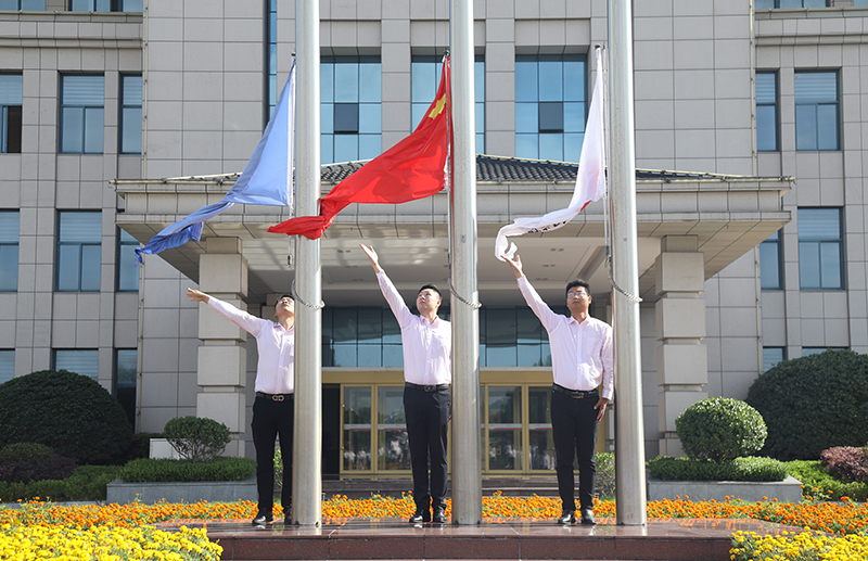 “升國旗、奏國歌,全體立正行注目禮。”隨著升旗手奮力揮臂將國旗拋向空中,鮮艷的五星紅旗伴著雄壯的《義勇軍進行曲》,在公司300余名黨員、員工的注目中冉冉升起,迎風飄揚。