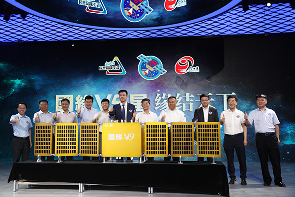 在新華媒體創意工場舉行的“國緣V9”號衛星冠名儀式