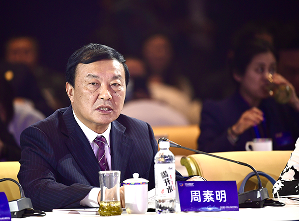圖為今世緣酒業股份有限公司黨委書記、董事長周素明在2020中國企業家博鰲論壇圓桌論壇發言。