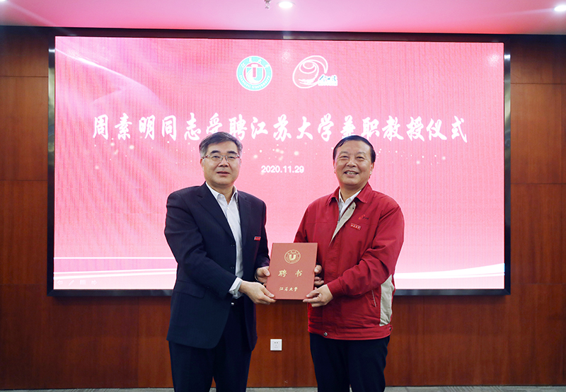11月29日,江蘇大學黨委書記袁壽其一行考察今世緣,并聘請公司黨委書記、董事長周素明為江蘇大學兼職教授。