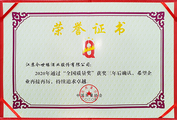 今世緣自2017年榮獲“全國質量獎”后,以持續宣貫和運用卓越績效標準為主線,聘請中國質量協會專家,對中層以上管理人員開展企業內部自評師培訓,提高自評師評審技巧和能力,并結合公司實際,開展了系統的自我評價。今世緣遵循新發展理念,以高質量發展為導向,以信息化建設、精益化管理為抓手,以釀酒智能化、營銷數字化為載體,著力打造智慧工廠,促進了公司由優秀向卓越邁進。未來,圍繞“釀美酒,結善緣”的企業使命,今世緣將再接再厲,不斷壯大發展自身,同時發揮行業示范作用,繼續倡導和踐行以卓越為引領,以質量創品牌,以創新促發展,助力企業實現高質量發展。