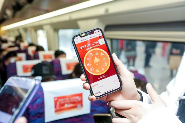 據悉,乘客可通過“今世緣?國緣”號高鐵專列車廂內小桌板、頭枕巾、列車海報上的二維碼,獲得今世緣為乘客特別準備的新年禮物,包括參加車票打折買單幸運抽獎,溫暖乘客的平安旅程。