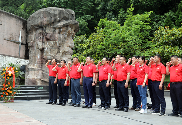 紅色江山,熱血鑄就。鳳凰山麓、湘江河畔,一座山,見證歷史;一種精神,鏈接未來。遵義市紅軍山烈士陵園紀念碑巍然聳立,四周青松翠柏,莊嚴肅穆。周素明、顧祥悅與公司相關方黨員代表向革命先烈敬獻花籃。全體學員駐足憑吊,默哀鞠躬,賡續英烈精神、砥礪家國情懷。隨后,面對黨旗莊嚴宣誓,重溫入黨誓詞。“我志愿加入中國共產黨,擁護黨的綱領,遵守黨的章程……”鏗鏘有力的誓言在紀念碑前回蕩。