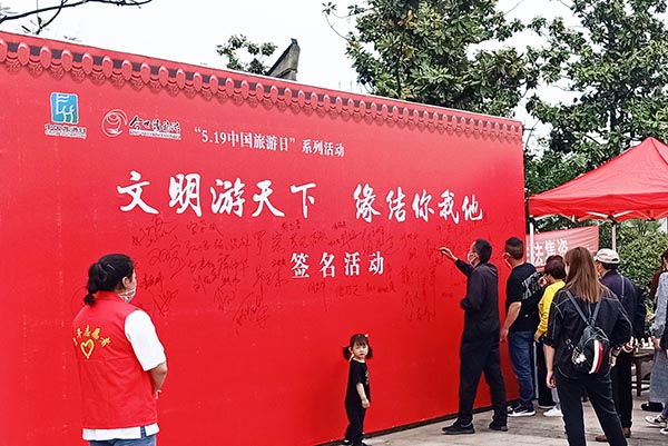 5月19日,正值第十一個“中國旅游日”,今世緣旅游景區在高溝酒非遺保護區酒緣廣場開展“文明游天下,緣結你我他”簽名活動。