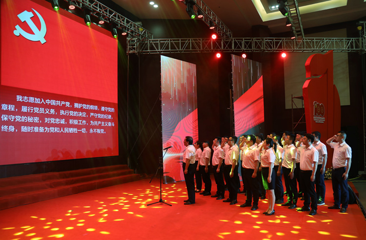 面對鮮紅的黨旗,周素明帶領2021年新發展的20名預備黨員進行入黨宣誓:“我志愿加入中國共產黨,擁護黨的綱領,遵守黨的章程,履行黨員義務……”擲地有聲、鏗鏘有力的誓言響徹講堂,表達了新時代黨員的責任和擔當,更表達了對黨忠誠、永不叛黨的堅定承諾。
