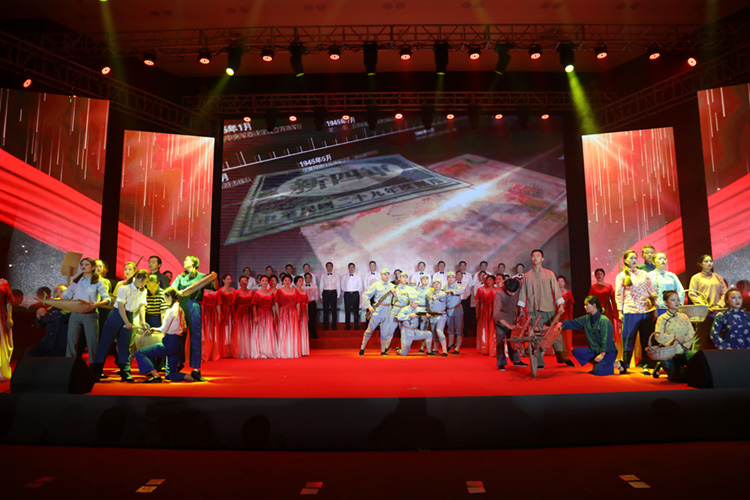活動現場,慶祝中國共產黨成立100周年大型情景歌舞《釀造未來》濃情上演,節目共分為《特殊黨產》《艱苦創業》《鳳凰涅槃》《世紀放歌》《釀造未來》五個篇章,綜合運用多種藝術手段,以盛大恢弘、波瀾壯闊的紅色樂章為黨的百年華誕獻禮,生動展現今世緣“黨費建廠”的紅色歷史,奮力描繪高溝酒廠在艱苦創業中走向崛起的壯美畫卷,熱情謳歌新世紀以來今世緣在創新變革中實現精彩跨越,昂首闊步邁向酒緣大業新征程。文藝演出在全場共同高唱《沒有共產黨就沒有新中國》的嘹亮歌聲中落下帷幕。