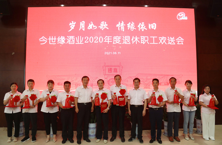 匯緣聚福,感恩有你。6月11日上午,今世緣2020年度退休職工歡送會在國緣賓館舉行。公司黨委書記、董事長周素明,黨委副書記、副董事長、總經理顧祥悅為69名光榮退休職工送上誠摯感謝和衷心祝福,并為退休職工代表頒發了《光榮退休證》和個性化定制的紀念酒。黨委副書記、工會主席魯正波,副總經理李維群出席歡送會。
