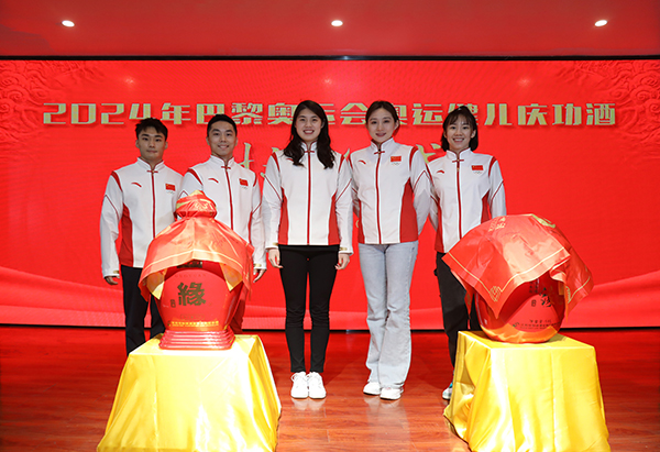 張雨霏、尤浩、咼俐、梁馨枰、孫煒等奧運(yùn)健兒在今世緣美酒銀行為江蘇奧運(yùn)軍團(tuán)巴黎奧運(yùn)慶功酒封壇。