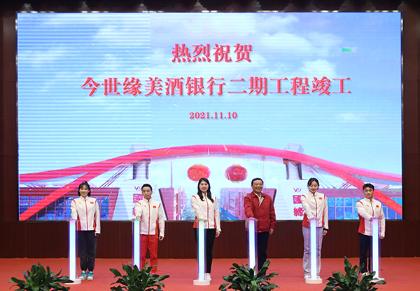 江蘇奧運(yùn)健兒和今世緣酒業(yè)黨委書記、董事長周素明共同見證今世緣美酒銀行二期工程竣工。