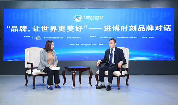 今世緣酒業(yè)黨委副書記、副董事長、總經(jīng)理顧祥悅走進(jìn)“進(jìn)博時刻品牌對話”訪談間。新華網(wǎng) 發(fā)
