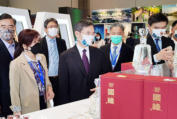 2021年12月9日,江蘇省委常委、省委統戰部部長惠建林(左四)在“澳門江蘇周”期間視察今世緣展區。