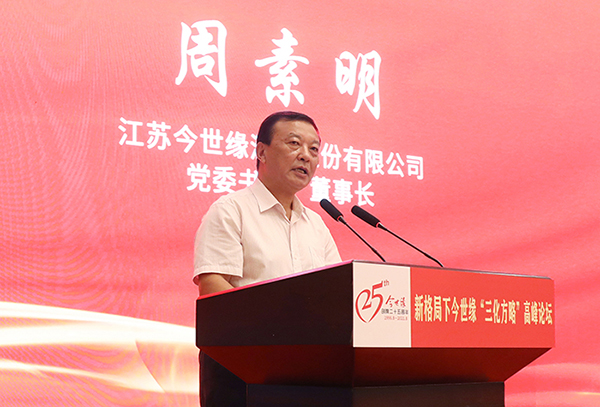 2021年8月26日,今世緣酒業黨委書記、董事長周素明在新格局下今世緣“三化方略”高峰論壇上致辭。