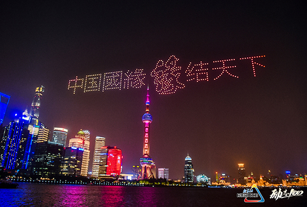 2021年“中國品牌日”之際,無人機表演“中國國緣 緣結天下”閃耀黃浦江。