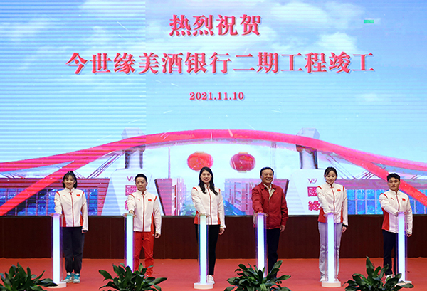 2021年11月10日,今世緣酒業黨委書記、董事長周素明和東京奧運江蘇健兒共同見證今世緣美酒銀行二期工程竣工。