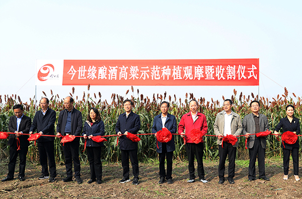 2021年10月30日,今世緣舉行釀酒高粱示范種植觀摩暨收割儀式。