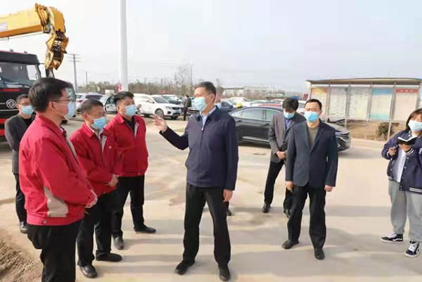 3月15日,縣委書記時勇在今世緣技改項目現場督導疫情防控工作。