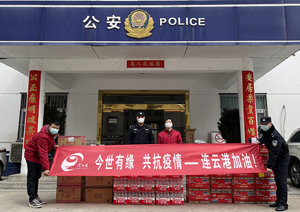 連云港疫情發生后,今世緣連云港市區辦事處、東海辦事處攜手經銷商,前往連云港海州區路南派出所、東海縣醫院、東海縣公路事業發展中心等單位慰問。“社會各界的關心溫暖著防疫人員的心,我們將全力筑牢疫情防控安全防線。”路南派出所所長趙艾國說。