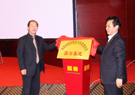 嚴漢忠和楊亞軍共同為淮陰師范學院經濟與管理學院實習基地揭牌。銷售部副經理何國慧,院麩曲車間主任張曉建,市場部經理助理胡繼剛做為淮師校友代表,向母校匯報了自己結識今世緣、走進今世緣以及成長于今世緣的心路歷程,對今世緣重緣惜緣、愛才惜才、知人善用表達了感激之情。嚴漢忠勉勵學子們一要勤奮,二要自信。“只要敢做想做,就一定能做好;只要認真走好每一步,相信都能走出美好的未來。”
