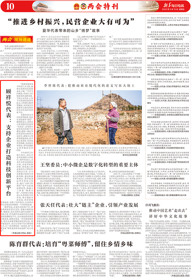 顧祥悅說,打造科技創新平臺,需要政府做好資金支持、資源對接和服務。他建議,加大支持打造科技創新平臺的力度,在有條件的實體經濟企業建設國家級研發平臺,為企業提質增效裝上推進器,助推企業進一步對接高端資源,使企業創新稟賦得到更高層次、更大幅度發揮,真正以高端平臺匯聚高端人才,以一流水準創造一流成果,把“關鍵變量”轉化成高質量發展的“最大增量”。