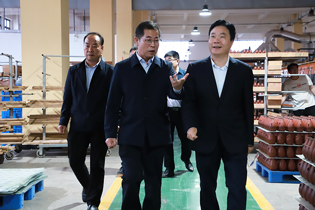 5月6日,仰韶酒業集團黨委書記、董事長侯建光陪同顧祥悅一行參觀仰韶彩陶坊制作車間。
