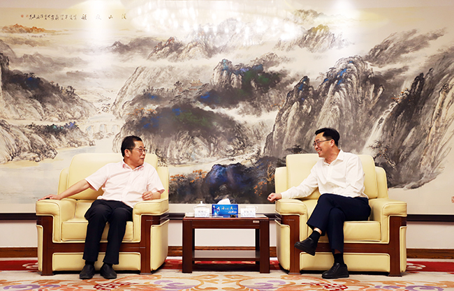 洋河股份有限公司黨委書記、董事長張聯東與今世緣酒業黨委書記、董事長、總經理顧祥悅座談交流。