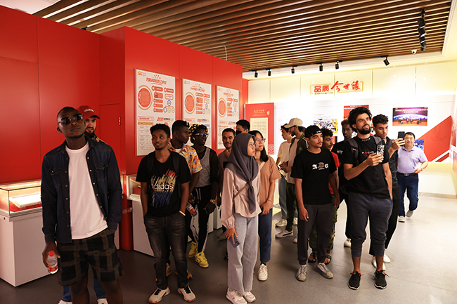 在今世緣展示中心,“開門逢緣,抬頭見囍”的創(chuàng)意設(shè)計引得大家嘖嘖稱贊。展廳中,一幅幅圖片展示著今世緣的歷史與緣文化內(nèi)涵。外籍友人邊走邊看,仿佛進(jìn)入了時光隧道,追尋著今世緣因緣而生、隨緣而盛的發(fā)展之路。“今世緣廠區(qū)酒香四溢,緣分濃濃。我喝過國緣酒,特別喜歡和朋友們在一起喝酒的感覺,這就是緣吧。”來自剛果(布)的留學(xué)生帕斯卡說。